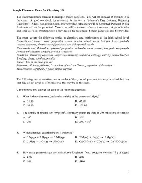 Free PDF College Chemistry Placement Test Study Guide Reader Open Library